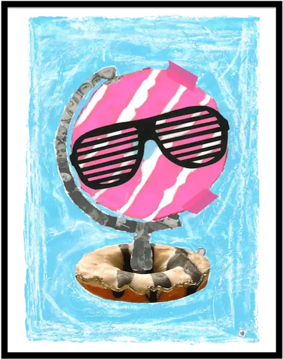 Mixed media - collage, acryl verf, gepigmenteerde pen - op grafisch wit papier, 300 x 420 mm.